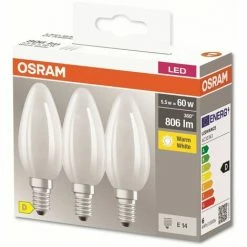 OSRAM LED-Lampe, CLA60, Matt, E14, EEK: D, 5,5W, 806lm, 2700K, 3 Stk